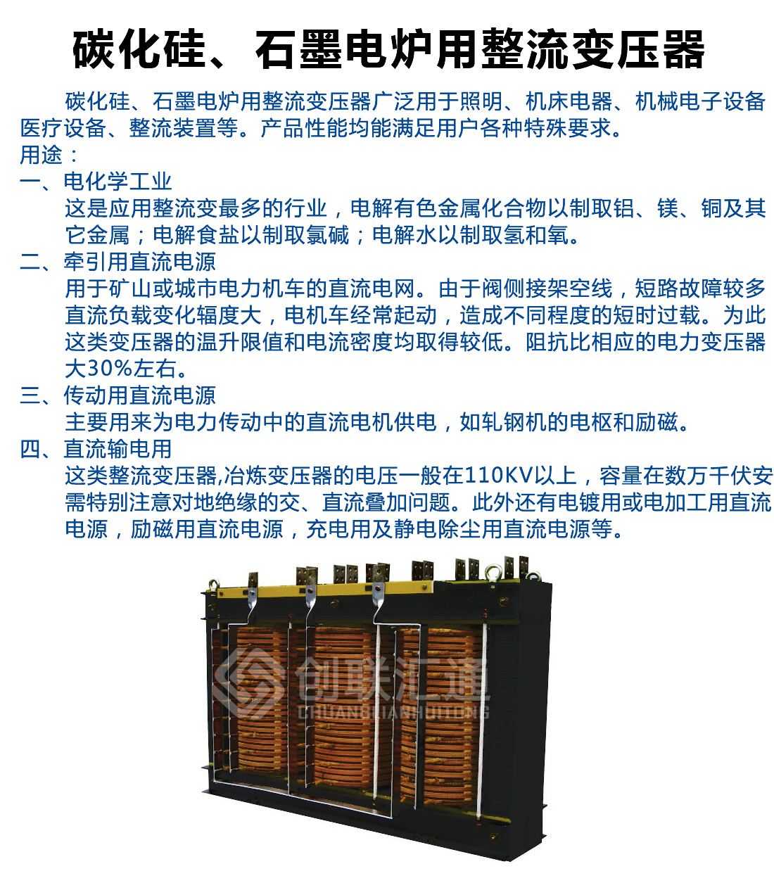 碳化硅、石墨電爐用整流變壓器廣泛用于照明、機床電器、機械電子設備、醫(yī)療設備、整流裝置等。產品性能均能滿足用戶各種特殊要求。