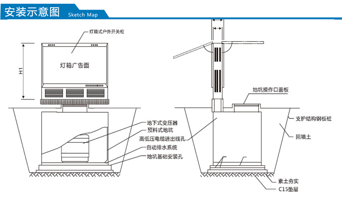 變壓器和高低壓柜等設(shè)備置入全地埋箱體內(nèi)埋入地下,保證地面無噪音干擾。
